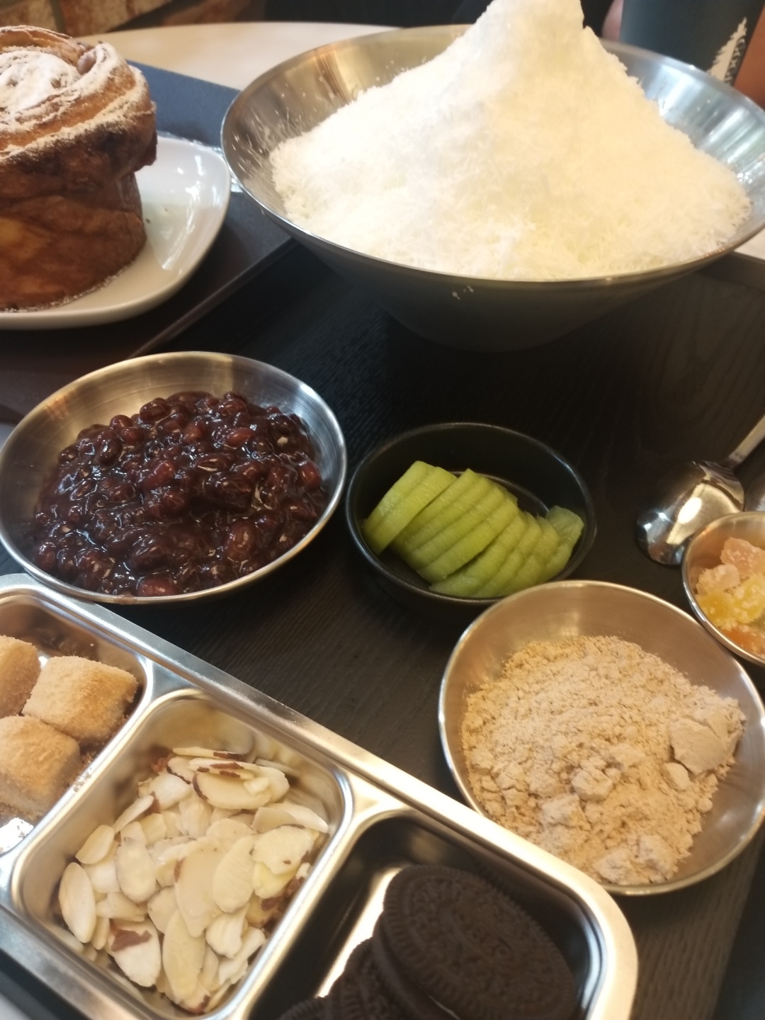 빙수는 직접 만들어먹게끔 DIY형식을 되어있었다. 사실 재료들을 보면은 가장 기본적인 빙수에 토핑들이 배치되어있는 형태였기에 아무런 기대 없이 빙수에 토핑을 올리고 섞어먹었다.