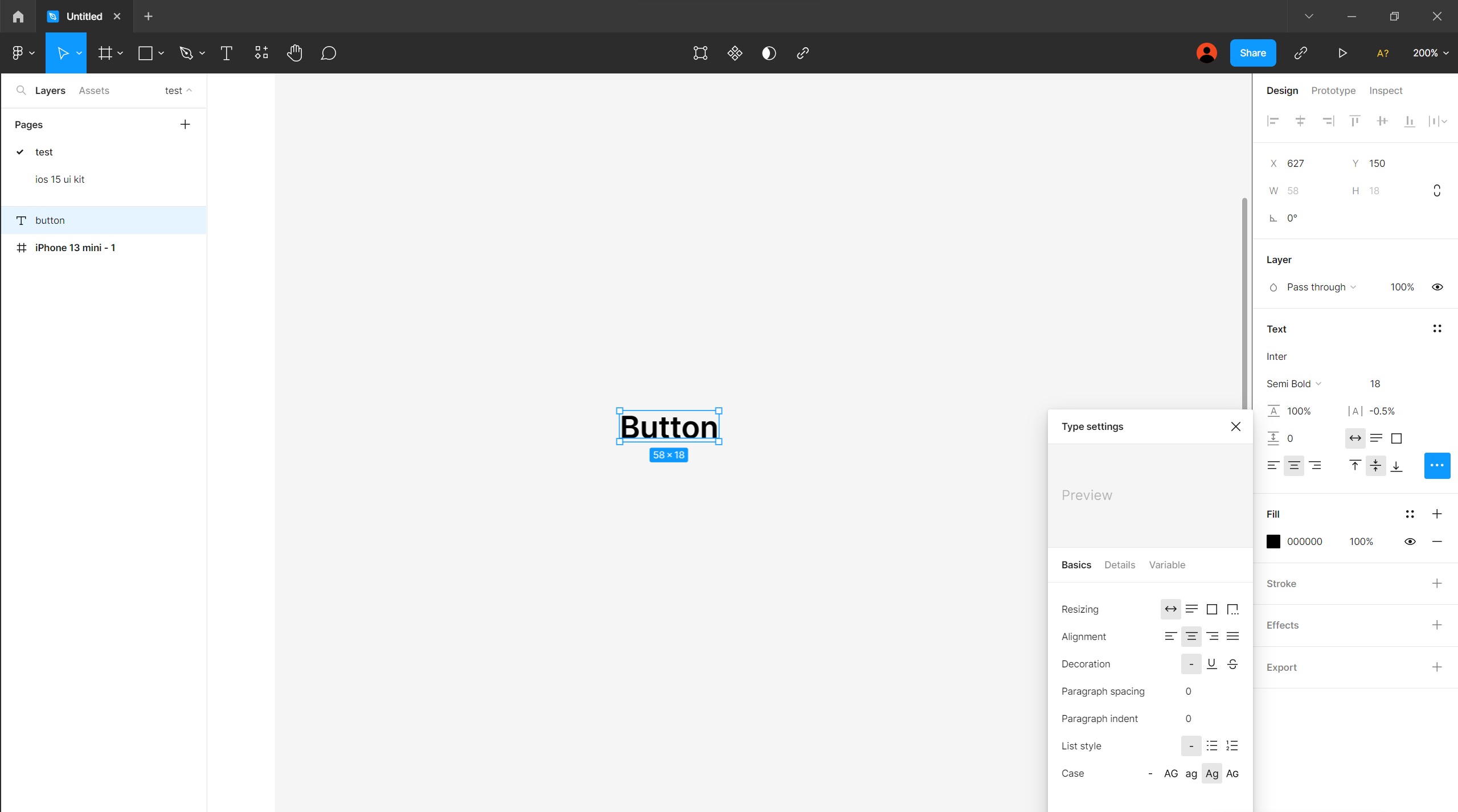 같은 폰트의 다른 사이즈 스타일을 생성하기위해 위와 동일한 방법으로 글자 선택후 우측 design 패널에서 edit text style -> name -> Button / Md 와 같은 네임 설정