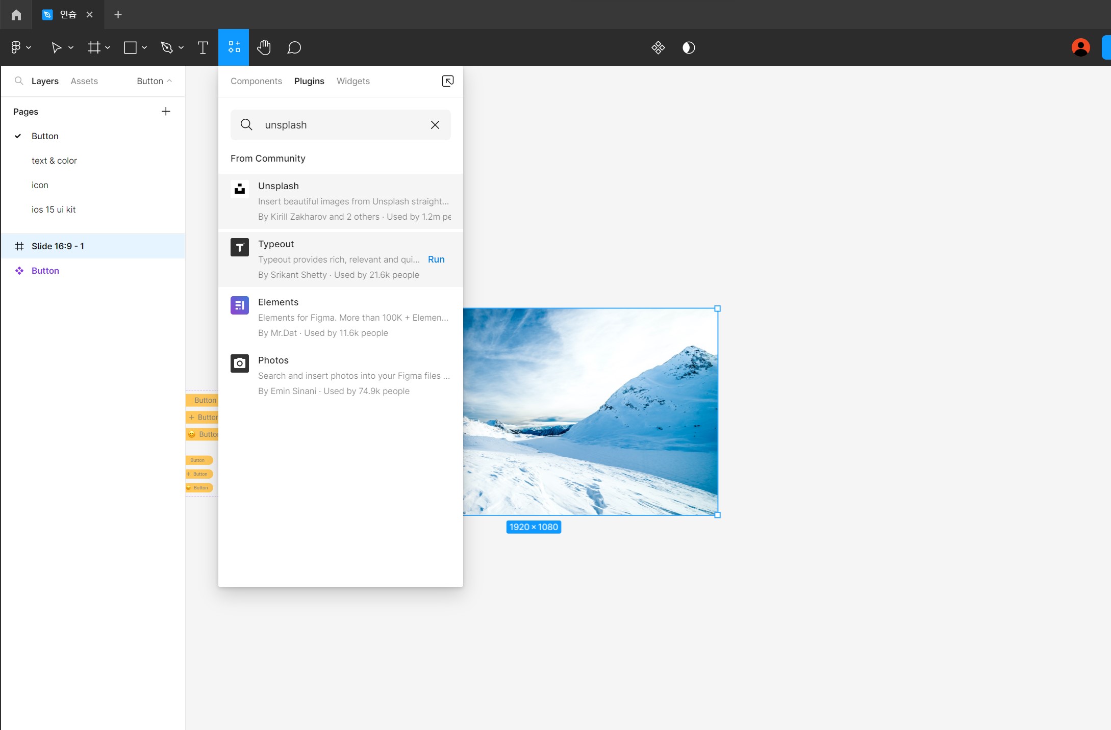 원하는 plugin 검색 -> run -> 오른쪽 클릭 -> plugin에 unsplash 설치 완료!