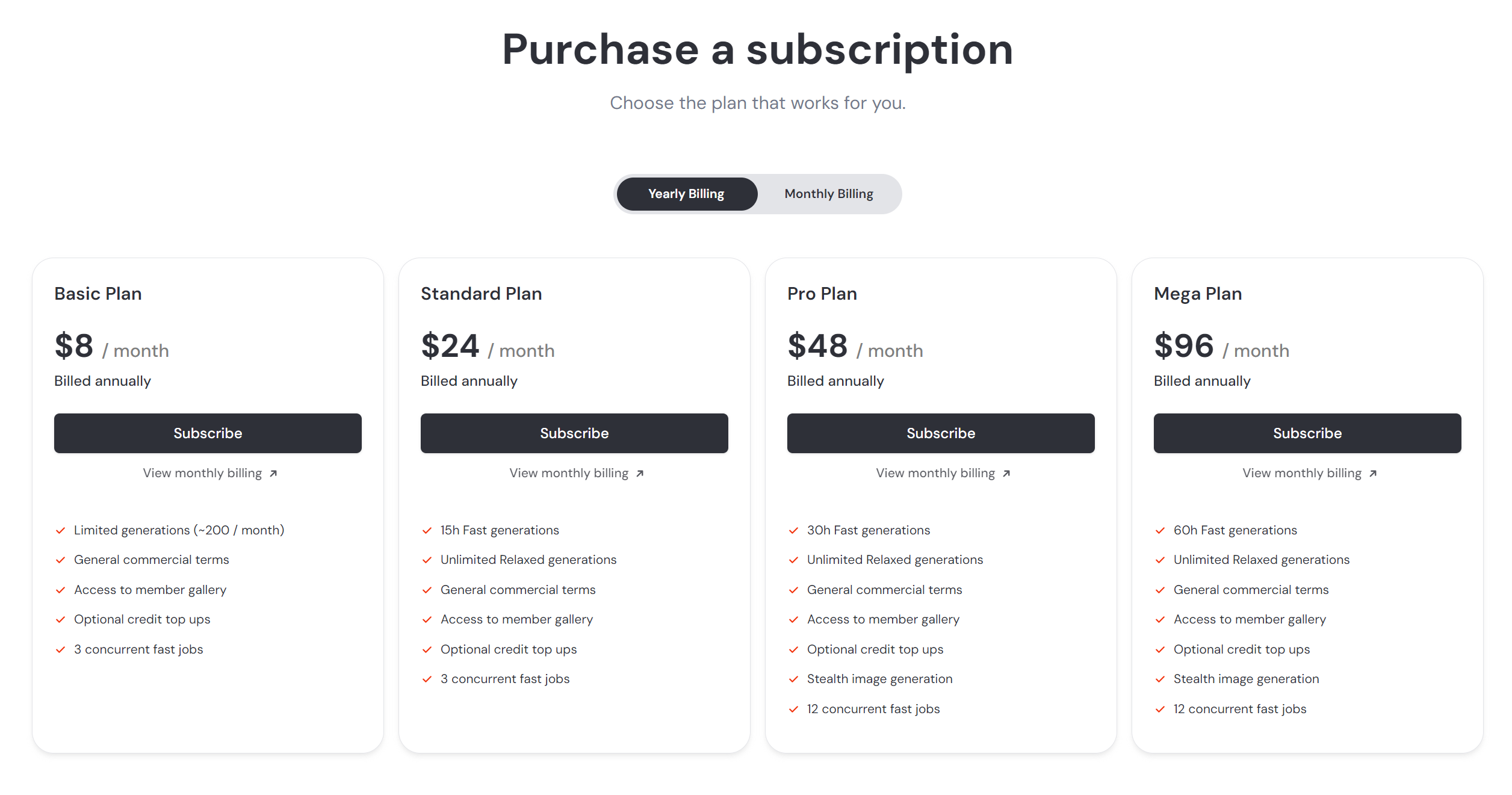 midjourney 채널에 들어가서 ' /subscribe' 명령어를 입력하면 구독료에 대한