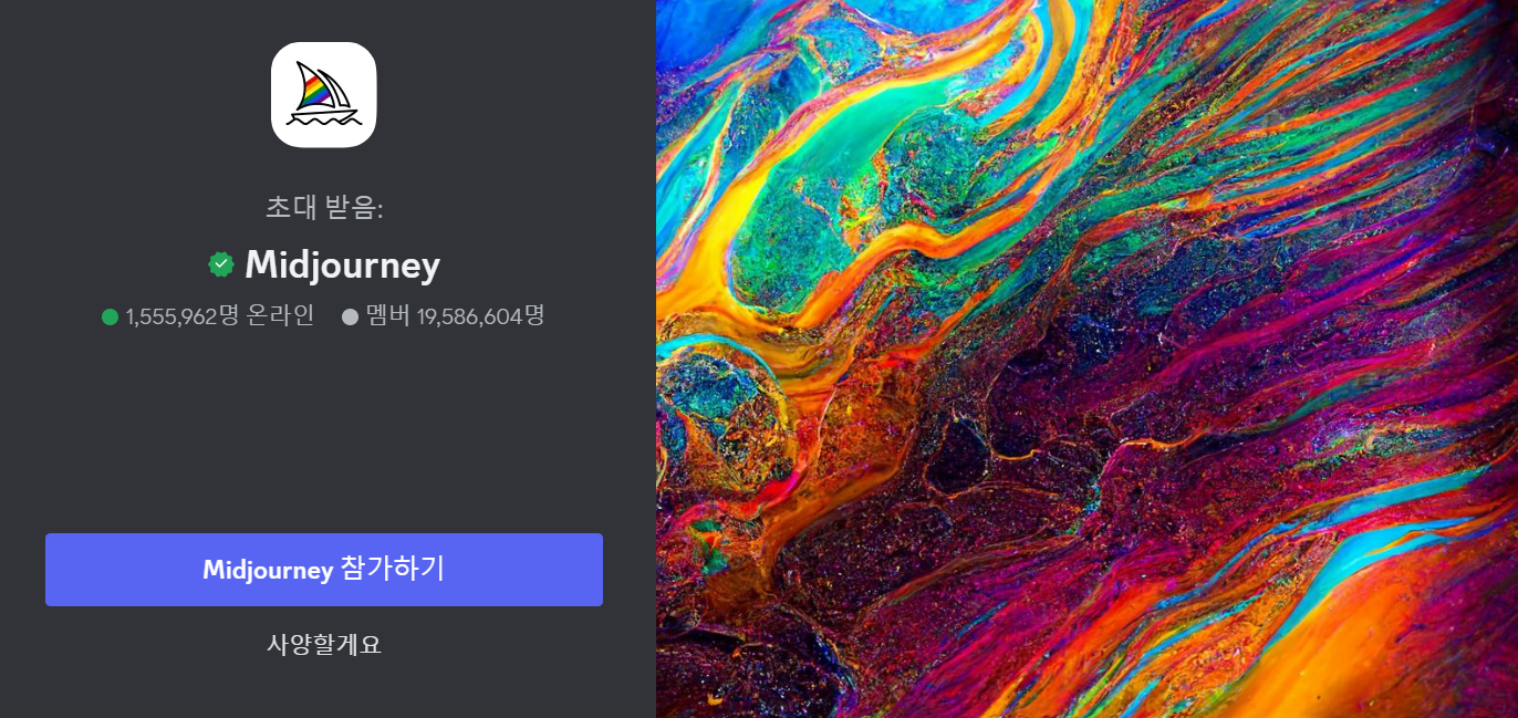 만약 디스코드 계정이 없다면 새로 생성해 미드저니 툴을 사용하길 바란다!