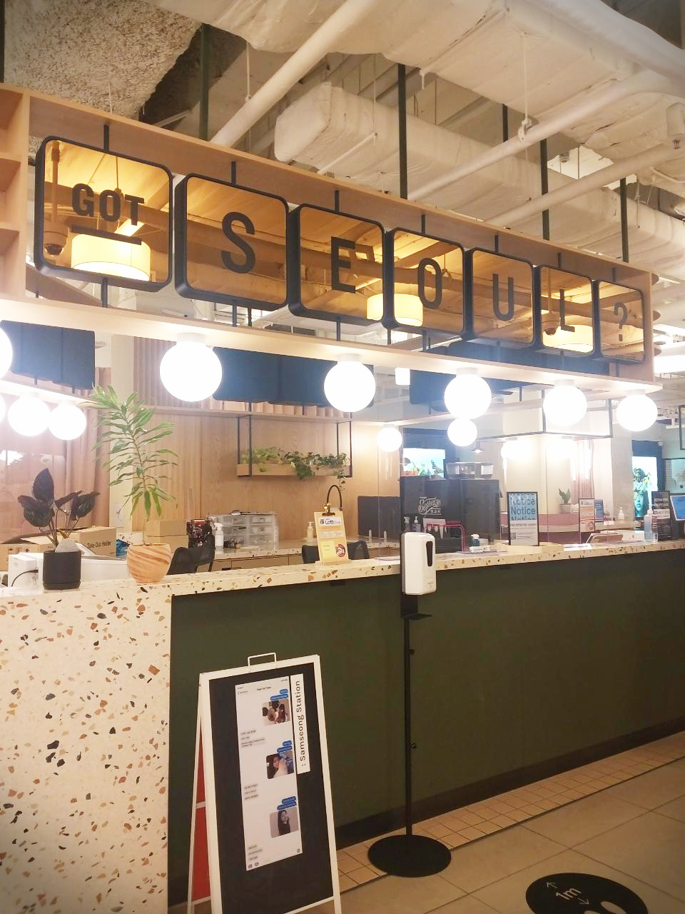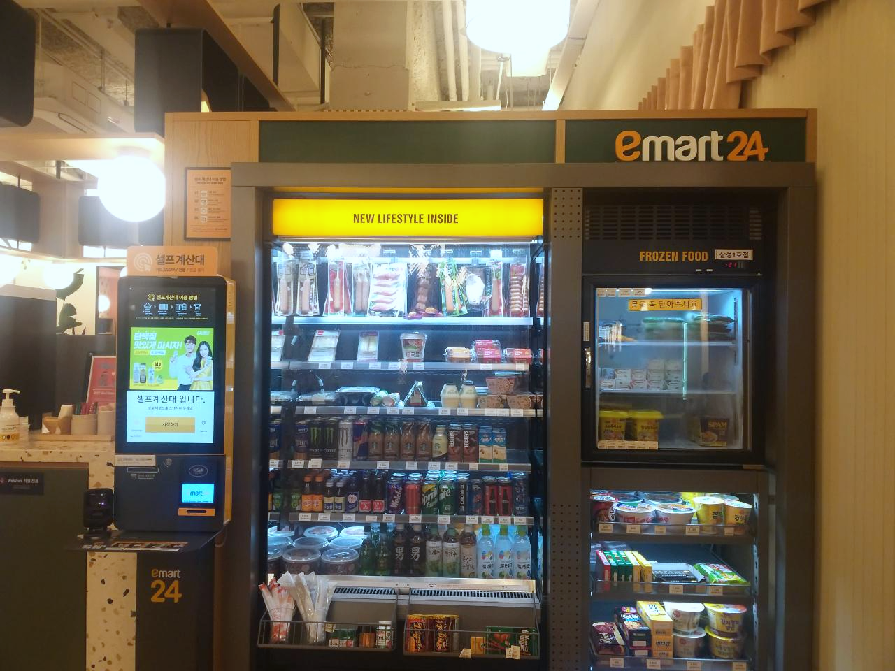 셀프 계산대와 함께 이마트 24가 있는데 중간중간 간식을 먹고 싶다면은 가까이에서 음료나 간식을 구매하여 먹을 수 있다. 원래 위워크에서는 맥주도 무료로 제공해주지만, 현재는 코로나로 인해 서비스 제공을 중단했다고 한다.