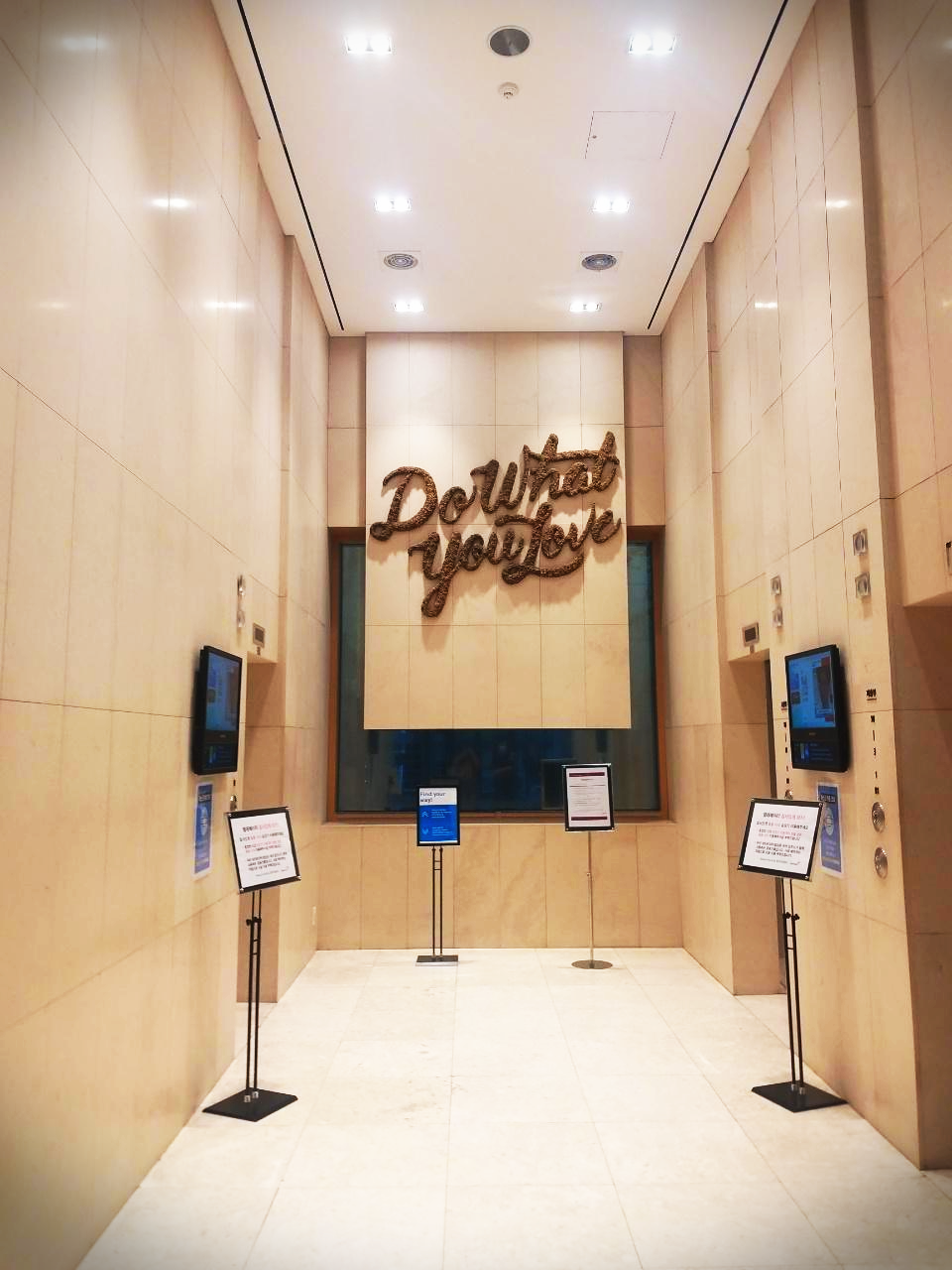 1층에 도착을 하면 예쁘게 꾸며진 로비가 우리를 맞이해 준다. 삼성역의 위워크는 지하에 위치해 있기 때문에 엘리베이터나 계단을 이용해서 지하로 가야한다. [ 내부로 들어가기 위해서 위워크 카드가 필요시 된다.]