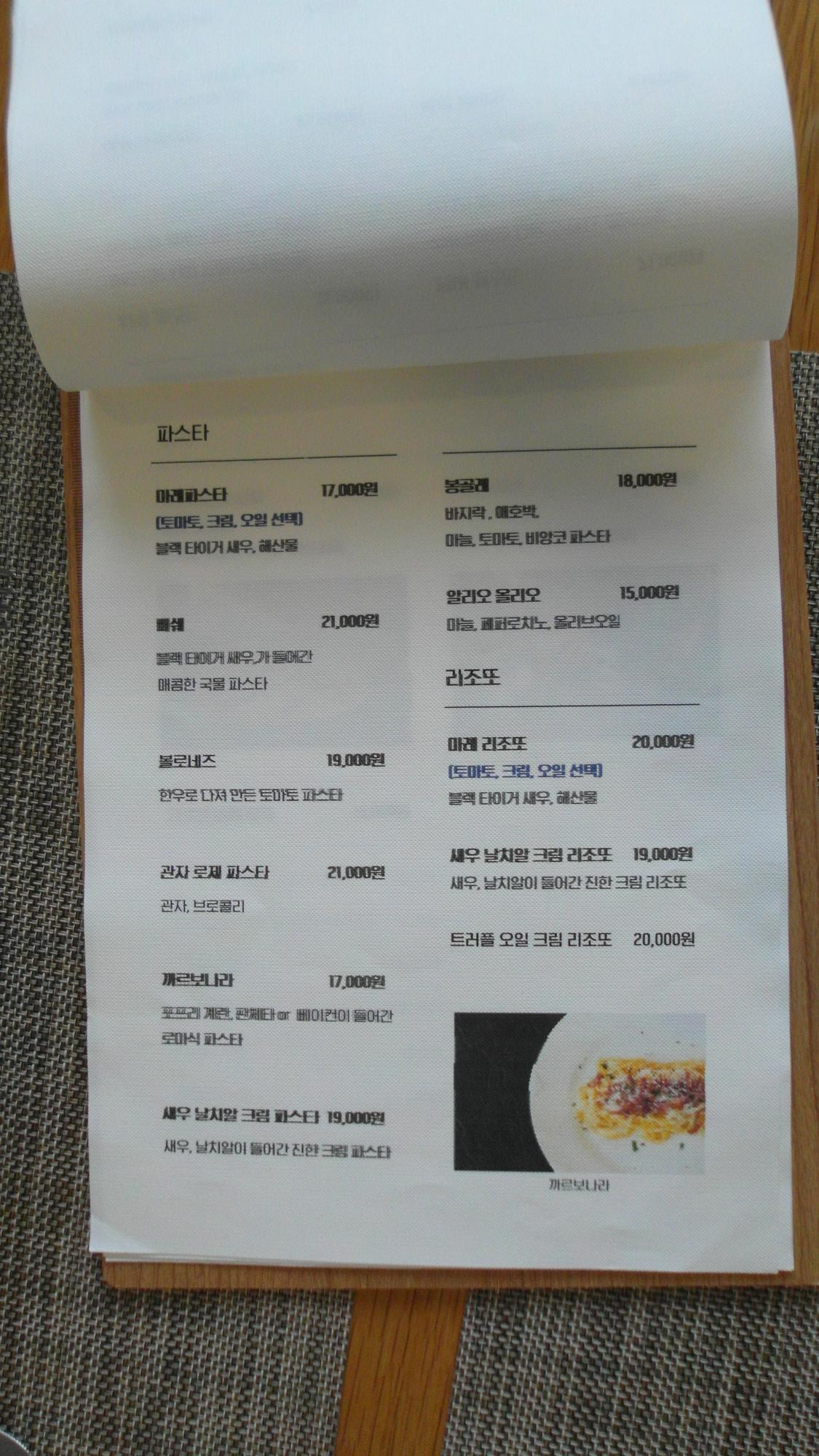 메뉴판은 이렇게 구성되어있고 오늘의 메뉴로는 마레 파스타 ( 오일 ), 새우 날치알 크림 리조또를 주문했다. 언니가 하루 종일 아무것도 먹지 않아서 다른 것들도 시킬까 했는데 우리 둘 다 양이 줄어들어서 혹시라도 남길까 봐 피자는 일단 보류했다.ㅎㅎ (다음에 오면 부르스게타 피자를 시켜먹을 예정이다.)