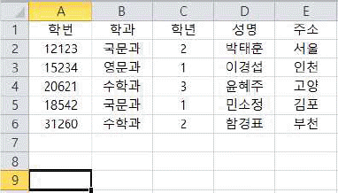 <Home> 키를 눌러 해당 행의 A 열로 이동한다.