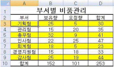 [B4] 셀을 클릭하고 <Ctrl>+<A>키를 누른다. |