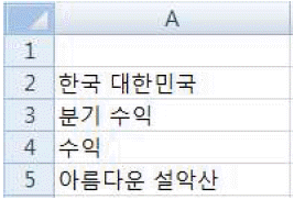 =REPLACE(A5,SEARCHB("한",A2),5,"") → '설악산' |