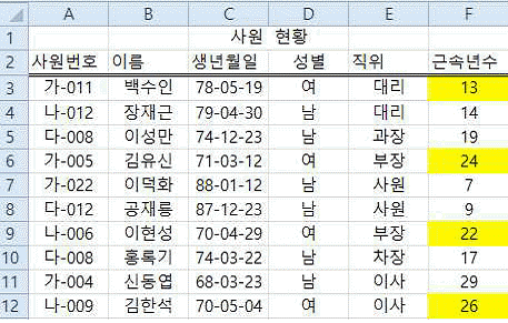 다음 중 성별이 '여'인 직원의 근속년수 합계를 구하는 수식으로 옳지 않은 것은?