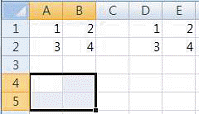 다음 중 아래의 워크시트에서 [A4:B5] 영역을 선택한 후 수식 ‘=A1:B2+D1:E2’를 입력하고, <Ctrl>+<Shift>+<Enter>키를 눌렀을 때, [B5] 셀에 표시되는 값으로 옳은 것은?